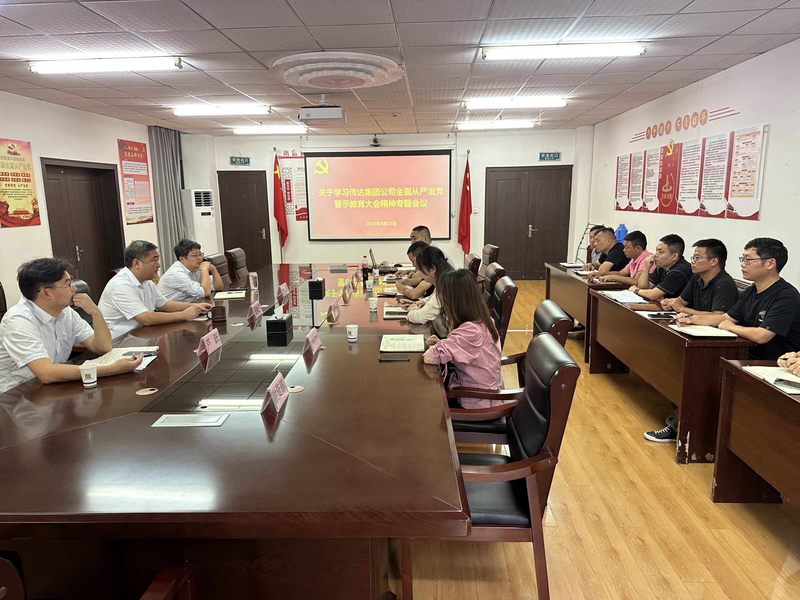9月15日上午,房地產(chǎn)黨支部召開關于學習傳達集團公司全面全面從嚴治黨警示教育大會精神專題會議,公司領導班子,全體黨員干部參加會議。