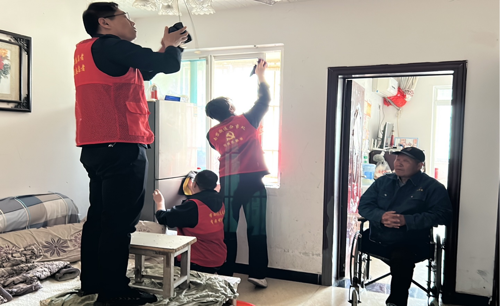 志愿者們本著服務(wù)社會(huì)、奉獻(xiàn)愛(ài)心的宗旨,拿上掃帚、簸箕、抹布等清潔工具,深入困難租戶(hù)朱學(xué)純、岳萍等家中,拖地、擦玻璃、整理雜物、收拾廚房,大家分工有序,將平常打掃不到的地方清掃干凈,將模糊的玻璃重新擦得明亮起來(lái),并用通俗易懂的語(yǔ)言向困難租戶(hù)細(xì)致講解居家養(yǎng)老服務(wù)的注意事項(xiàng)?!案兄x你們惦記著我,還幫我打掃衛(wèi)生?!敝鞂W(xué)純老人激動(dòng)地說(shuō),溫馨的氛圍彌漫在空氣中。