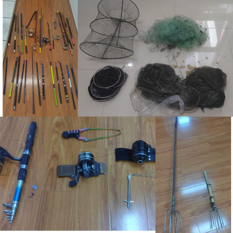 行動(dòng)中,工作人員發(fā)現(xiàn)并沒收了偷釣者使用的魚竿共計(jì)70余把,彈弓射魚器10余把,甲魚捕捉器20余個(gè),撒網(wǎng)2個(gè),魚叉2個(gè),這些魚竿不僅破壞了水生生物的生存環(huán)境,也嚴(yán)重威脅到游客的自身安全。同時(shí)清理了藏匿于水下的地籠20余個(gè),捕漁網(wǎng)300余米,這些非法捕魚工具嚴(yán)重破壞了水生態(tài)系統(tǒng)的平衡,是此次清理的重點(diǎn)對象。工作人員還勸離野游人員約570人次,通過現(xiàn)場講解、發(fā)放宣傳資料等方式,向他們普及了水域安全知識及保護(hù)生態(tài)環(huán)境的重要性。設(shè)立“珍愛生命,遠(yuǎn)離危險(xiǎn)水域;保護(hù)環(huán)境,從我做起”等溫馨提醒標(biāo)示牌,讓安全意識深入人心,得到大家的積極響應(yīng)和支持。