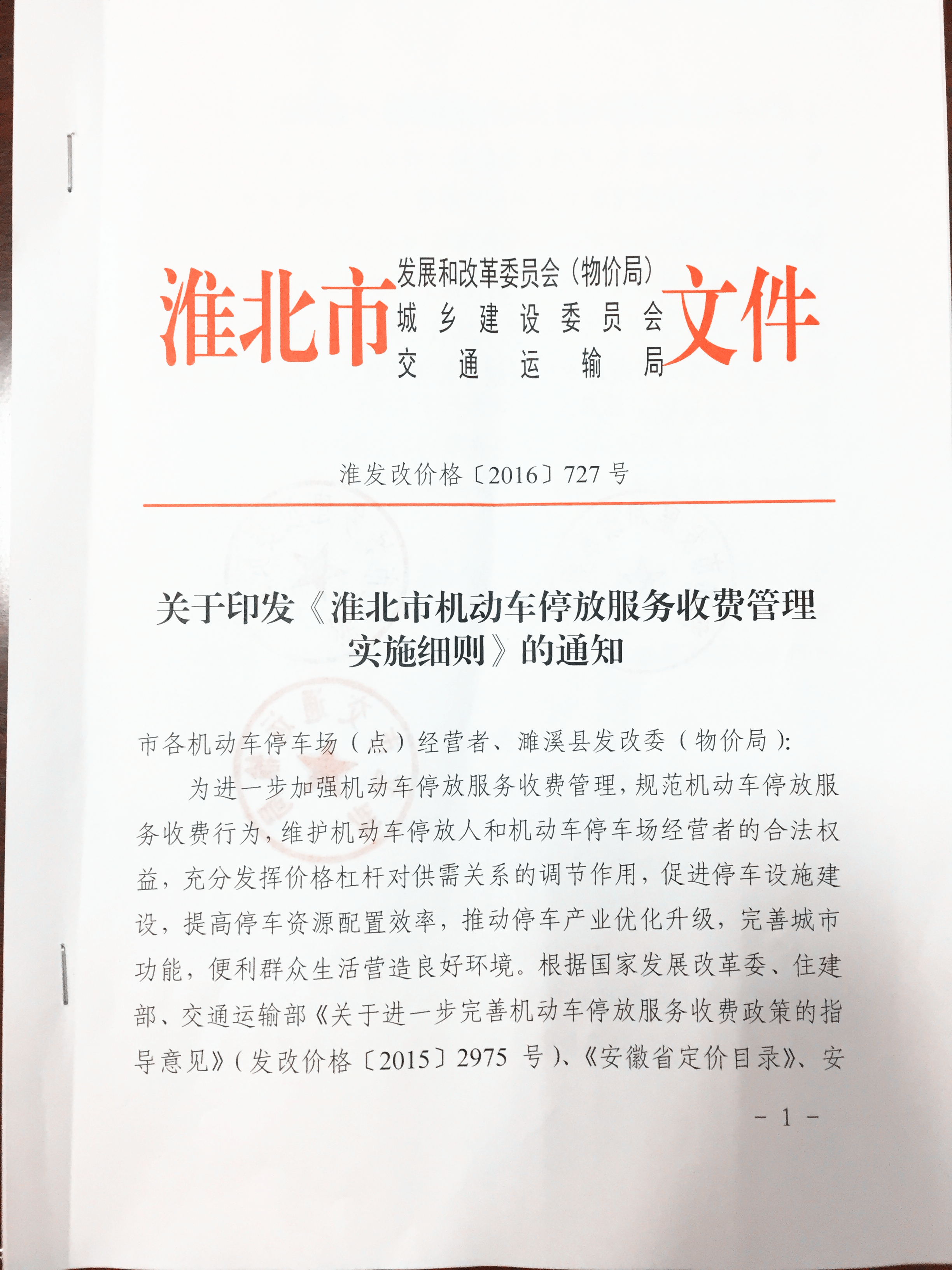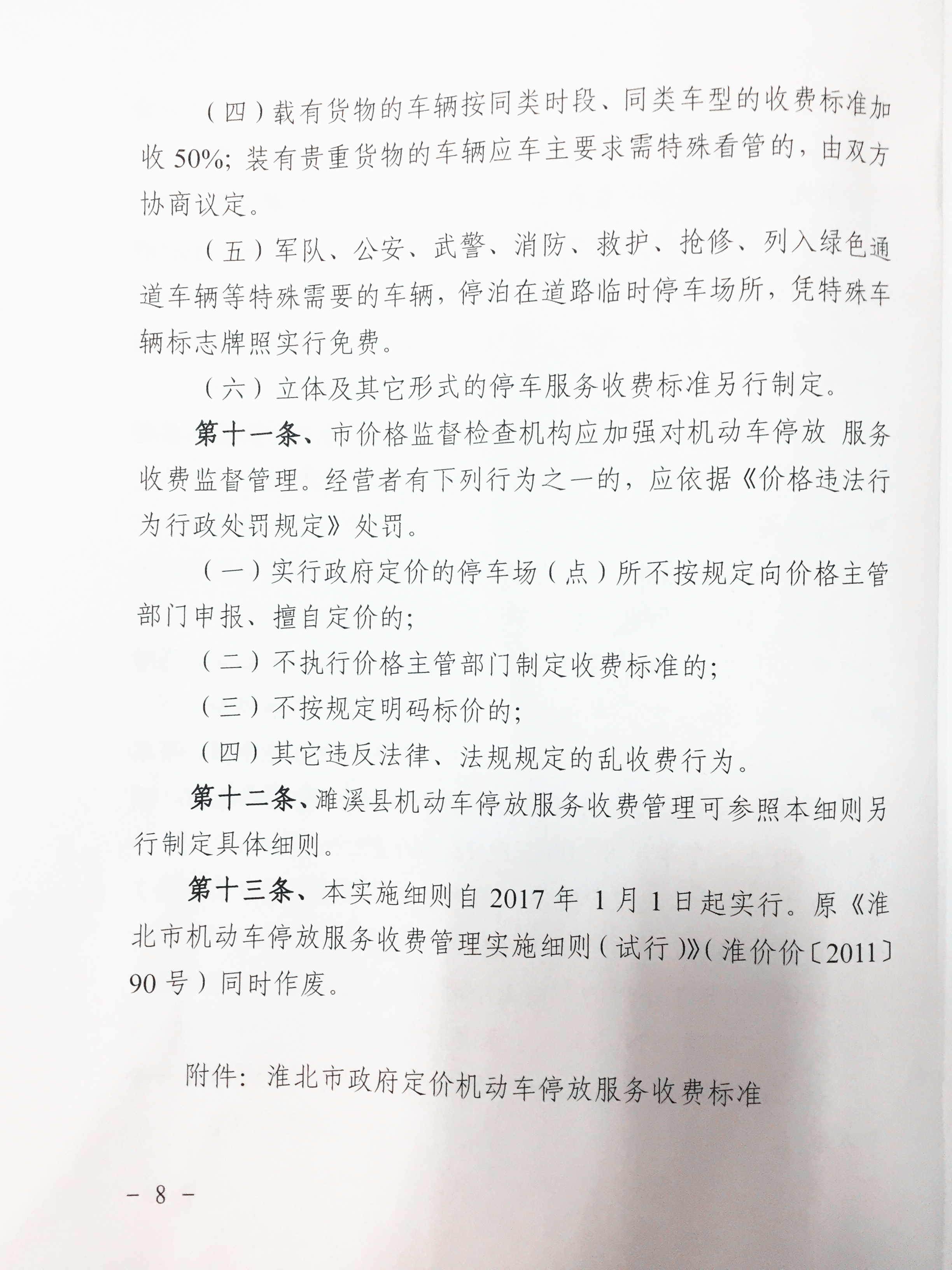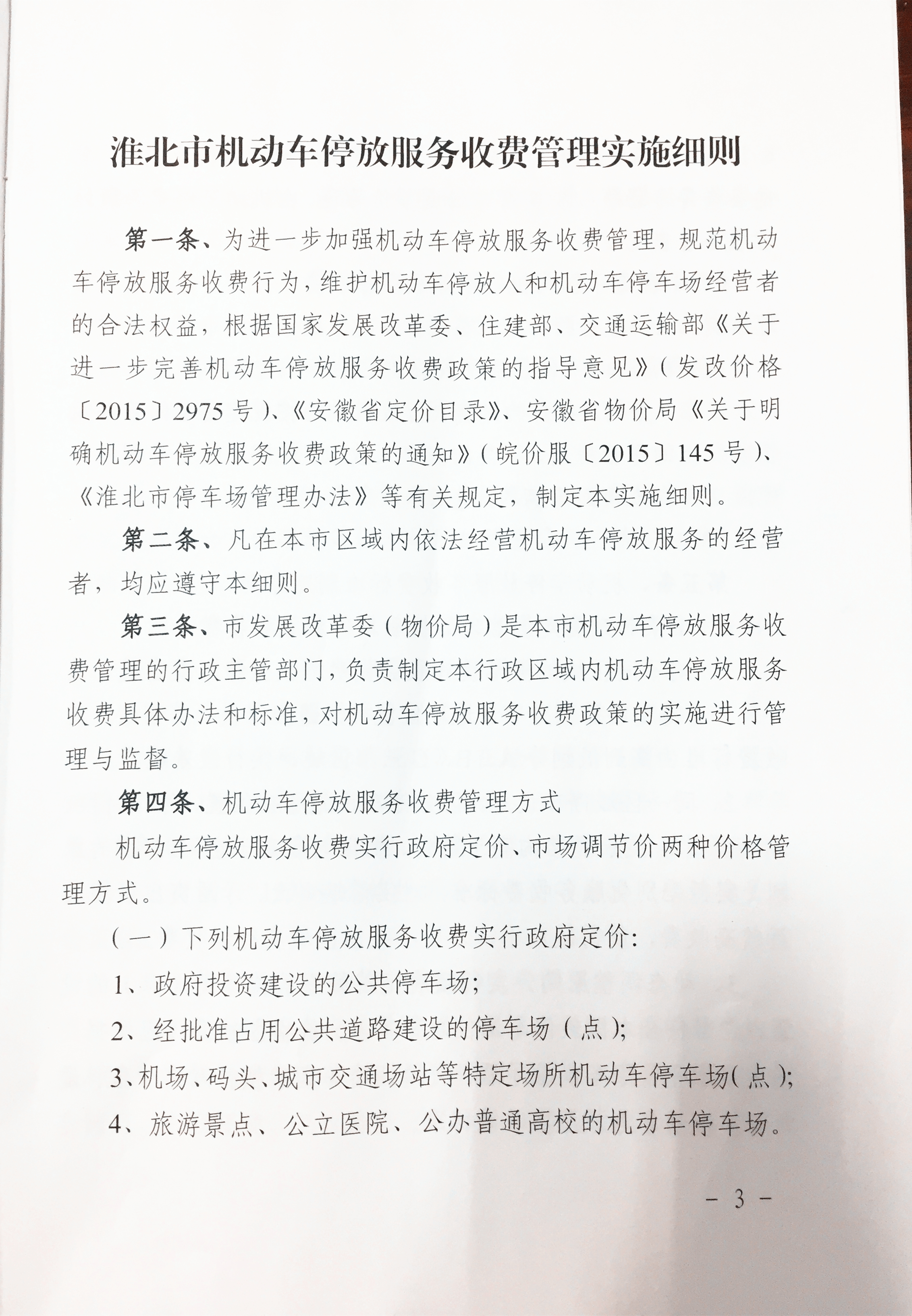 淮北市機動車停放服務(wù)收費管理實施細則
