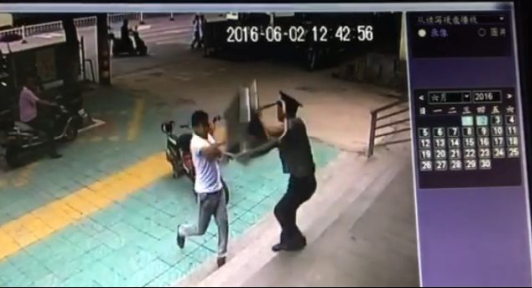 2016年6月2日12時35分左右,正在工行東區(qū)支行值勤的隊員楊玉柱突然聽到一聲巨響,只見人行道上有一青年男子正在用路基磚打砸銀行的滾動LED屏幕。為了防止該男子進入營業(yè)廳內(nèi)部,楊玉柱立刻將大門關(guān)上,并通知正在大廳內(nèi)辦理業(yè)務的群眾注意安全,隨即對該男子進行喝止,其不聽勸阻態(tài)度惡劣,反而開始打砸大廳大門。后該男子沿人行道向西逃竄,楊玉柱隨即進行追趕并報警。