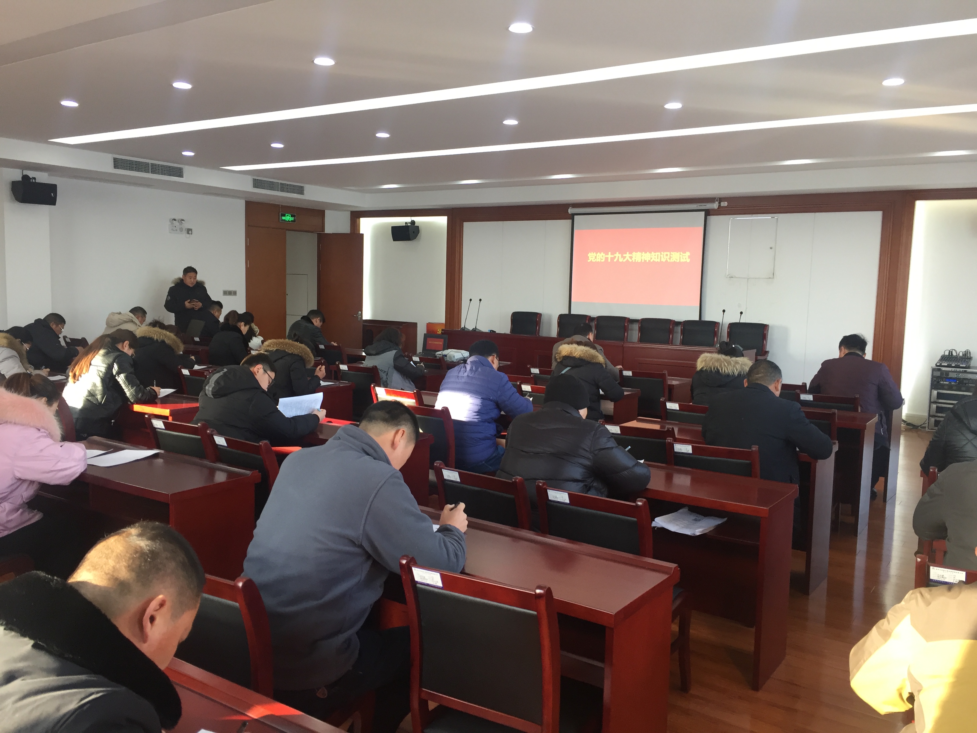 為深入學(xué)習(xí)宣傳貫徹黨的十九大精神,全面貫徹落實(shí)習(xí)近平新時(shí)代中國(guó)特色社會(huì)主義思想,把廣大黨員和干部員工的思想統(tǒng)一到黨的十九大精神上來,南投黨支部于2018年1月10日上午9點(diǎn)組織南湖運(yùn)營(yíng)公司、南湖酒店公司全體黨員干部職工進(jìn)行黨的十九大精神知識(shí)測(cè)試。此次測(cè)試為閉卷形式,滿分100分,分為單選題、判斷題和簡(jiǎn)答題三部分。