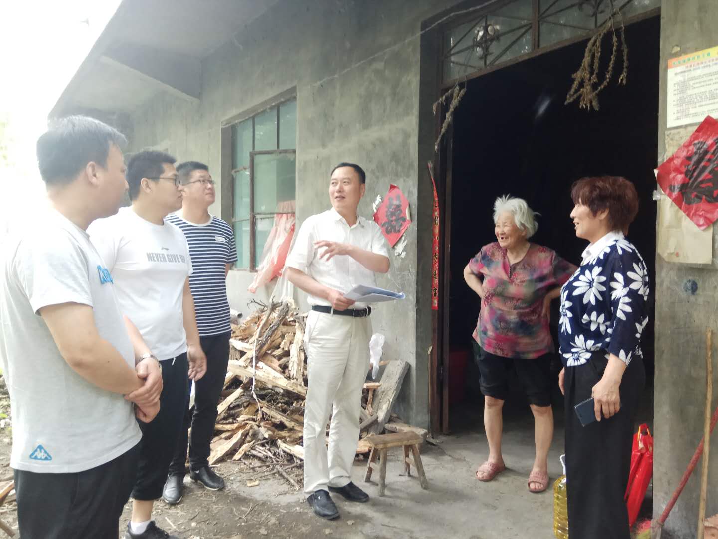 2018年5月29日下午,由通鳴公司支部副書(shū)記程南華同志帶隊(duì),與通鳴公司副總經(jīng)理張震同志及部分黨員同志一行人走訪慰問(wèn)了火神廟村貧困戶(hù)周維九家庭,并給貧困戶(hù)帶來(lái)了大米、油、面條等生活用品。