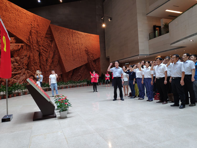 會后,全體黨員同志前往渡江戰(zhàn)役紀(jì)念館進(jìn)行參觀學(xué)習(xí)。在紀(jì)念館一樓大廳,面對鮮紅的黨旗,三個支部的黨員領(lǐng)導(dǎo)干部重溫入黨誓詞,進(jìn)一步堅定了黨員的理想信念,增強了黨員的責(zé)任感和使命感。