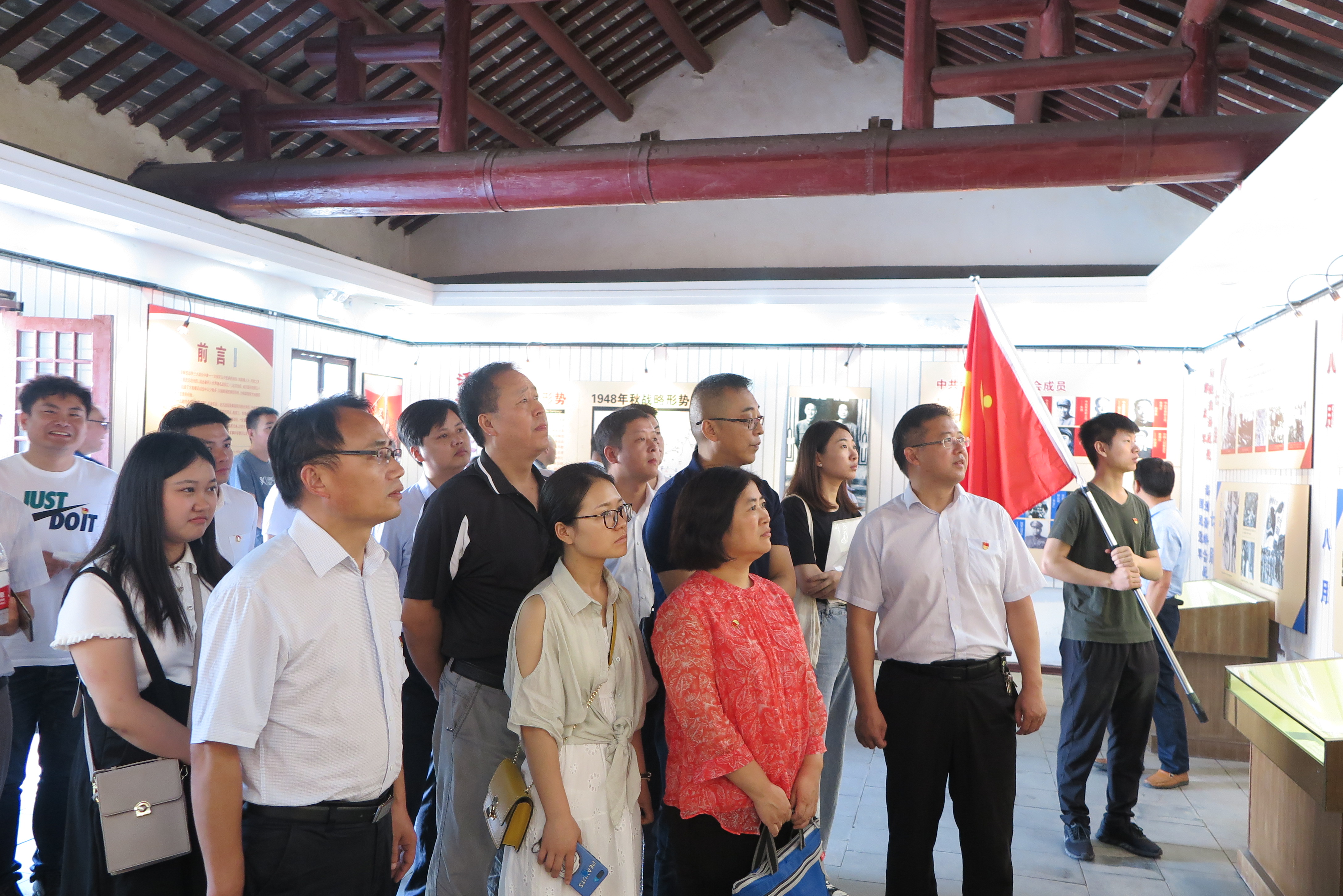 四個(gè)黨支部共計(jì)28名黨員同志赴臨渙文昌宮,參觀中共淮海戰(zhàn)役總前委舊址,走近在文昌宮回顧淮海戰(zhàn)役的革命歷程,緬懷老一輩無產(chǎn)階級(jí)革命家的豐功偉績,教育和引導(dǎo)黨員們進(jìn)一步增強(qiáng)“四個(gè)意識(shí)”,堅(jiān)定“四個(gè)自信”,做到“兩個(gè)維護(hù)”。隨后,全體黨員同志到小李莊淮海戰(zhàn)役總前委指揮部舊址和小李家紅色博物館進(jìn)行參觀學(xué)習(xí)。在紅色主題文化廣場進(jìn)行宣誓,再一次重溫入黨誓詞,回顧入黨初心,牢記黨員使命。